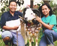 Me, Abimanyu, and Unie at Villa Bandung Indah.